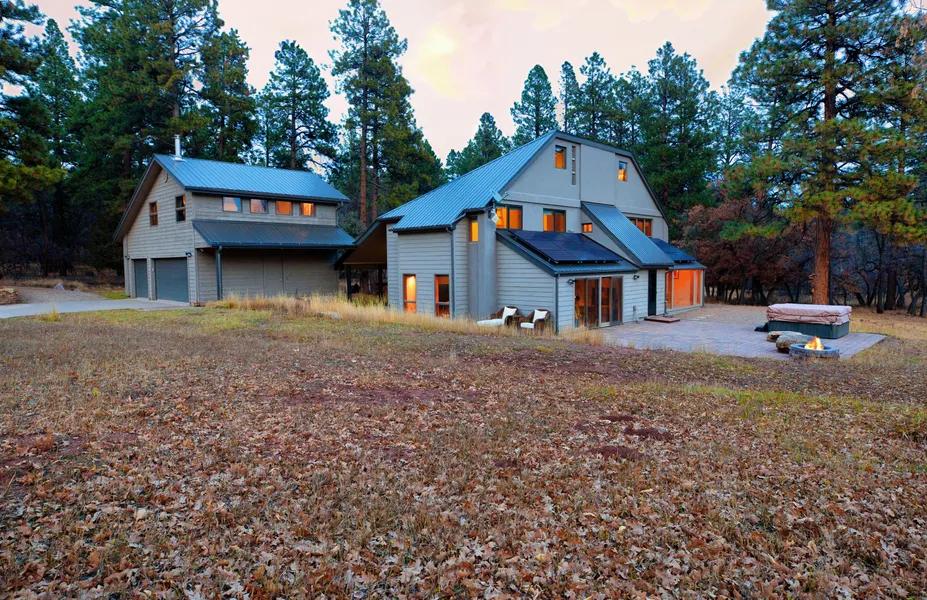 Contemporary Luxury Meets Natural Beauty in Falls Creek Ranch Situated in the picturesque meadows of Falls Creek Ranch in Durango, this stunning contemporary home offers a seamless blend of modern luxury and natural charm. Extensively remodeled in 2016, the property boasts updates inside and out, including a new roof, ensuring a move-in-ready experience. The home sits on a rare, open, and flat lot in the meadows, offering optimal southern exposure for energy efficiency year-round. Spanning 3,156 square feet, the main residence features three bedrooms and three full bathrooms, designed with comfort and sustainability in mind. Highlights include in-floor heating in the master bath and kitchen, forced-air heating, and a passive photovoltaic solar system. The covered deck entry leads to an airlock-style foyer that opens to a sunlit living room with built-in cabinets. Sliding doors reveal a paved stone patio complete with a fire pit, hot tub, and outdoor entertaining space—perfect for enjoying breathtaking views of Durango’s iconic red cliffs and the serene meadow beyond. At the heart of the home, the open-concept main floor features a spacious kitchen with contemporary countertops, an island with seating and pendant lighting, and a dining area where large windows frame stunning views and local wildlife sightings. The great room’s wood-burning fireplace adds warmth and ambiance, while a spa-like bathroom with a tub and sauna completes the main level. Upstairs, the luxurious master suite includes dual vanities, a remote-controlled adjustable mirror, a dual shower, and a soaking tub beneath a sparkling chandelier. Two additional bedrooms and a shared bath round out the private living quarters. Beyond the main home, the detached three-car garage includes a 528-square-foot studio apartment with a full bath and pellet stove. This versatile space is ideal for visitors or flexible use and can only be rented when the homeowner is not occupying the main house. Recent upgrades, including new flooring, baseboards, and a water softener, enhance the home’s modern appeal and ensure comfort. Falls Creek Ranch offers a unique lifestyle, blending luxury with outdoor adventure. The community features miles of trails for hiking, mountain biking, and horseback riding, with direct access to 172,000 acres of BLM land. Residents enjoy a private lake with a sandy beach, swim platform, kayaking, and paddleboarding opportunities, as well as tennis facilities and horse stables. Only 100 Home sites spanning 940 acres, the ranch is a serene haven set amid Ponderosa pines, meadows, and striking red cliffs, all maintained by an on-site caretaker who ensures year-round road access. Each homeowner has a 1 acre lot and 9 acres of open space so it feels like a 10 acre parcel. Steeped in history as an archaeological preserve of ancient Anasazi land, Falls Creek Ranch combines a rich cultural legacy with modern amenities and an active outdoor lifestyle. This home is not just a residence; it’s a retreat into Durango’s most captivating landscape. A tremendous value - home and guest house now priced below the appraisal.