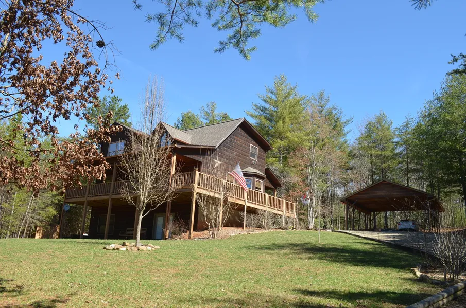 Quality 3BR/3BA with loft and full finished basement. Interior has nice mix of sheetrock/T&G wood. Wrap Deck to rocking porch on Front of Home. Rock to Ceiling Gas Log FPLC in Great Rm, Triple glass Dormer Windows. Hardwood floors.Tile in BAs, laundry on Main. Large Loft. Walk in Closets, Bayed Dining area off Open Kitchen w/island. 24x30' 2-Car Pole-Barn added in 2009. 2409 Htd sq ft on 1.67 Acres of Gentle property - Nicely Landscaped - looks like the set of Bambi - Lots of wild animals! Quiet setting. Lower lvl has bamboo floors, BR/BA, wetbar, int/ext entrance. Excellent location w/proximity to Nottely Dam Recreation area, New Casino in Murphy, apprx 10 mi to downtown Blairsville. Established Subdivision with Sensible Restrictions to protect your investment.