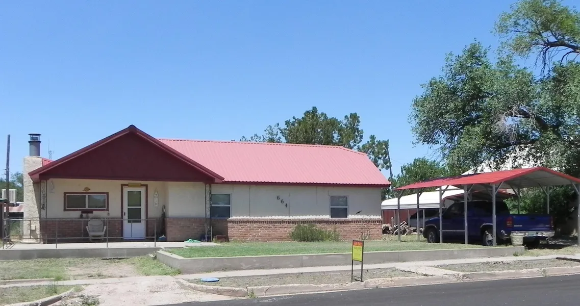 Cute little 1200 SqFt, 2 bed 1 bath home with an office that could be used as a 3rd bedroom. This open kitchen/living area is showcased with a brick built in electric stove and oven. The fireplace with a hand-hewn wood mantel heats the kitchen/dining area. The living room is heated with both a pellet stove and a gas wall heater and cooled with a swamp cooler.
