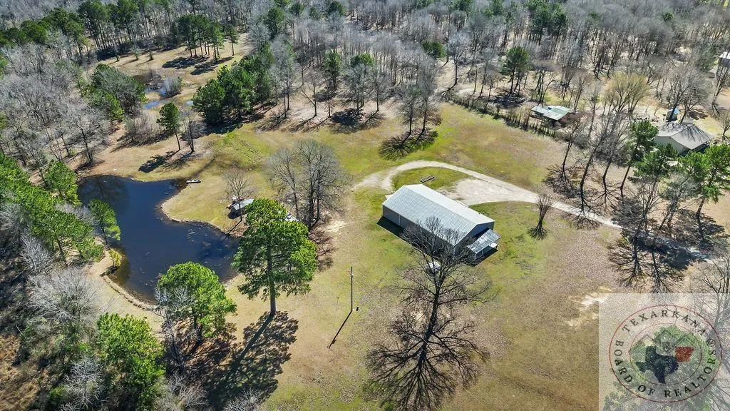 Welcome to this stunning barndominium on 10 acres in Texarkana, Arkansas! This home was built in 2012 with over 4500 square foot under roof, giving you ample living and entertaining spaces! The home area offers four bedrooms and three full bathrooms with an open concept kitchen and living area design. You will love the recently built electric fireplace and cabinetry for storage! A large primary bedroom with closets and a bathroom are off the living room along with a second bedroom and full bathroom in the hallway. The other two bedrooms and full bathroom are upstairs, along with great attic storage access! Walk out the back door of the home to find a 2000 square foot attached shop with two roll up doors. There is so much space for your boat, camper, vehicles or to just throw a party! Outside there are 10 acres to hunt, fish or explore on! This unique property has been well maintained and is move in ready for the next owners!