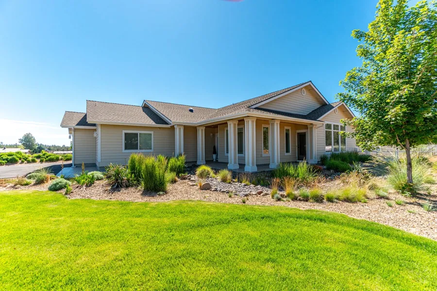 Don't miss this opportunity to own your piece of paradise with stunning views and unparalleled access to outdoor adventures! Spanning 2,801 SqFt, this single-level home on 1.06 acres boasts Cascade Mountain views and direct access to public lands. 4 beds, 3 baths, including a primary ensuite- a retreat featuring a soaking tub, fireplace, and walk-in shower. The heart of the home is the open kitchen-great room featuring a kitchen island/breakfast bar and 2 seating areas—walls of windows and glass doors open to the outdoor covered living area. Bordering public lands, the fenced backyard and greenhouse are perfect for gardening enthusiasts! Enjoy working on your projects, park your RV/boat/toys, and enjoy the large, 40'x44' 1760SF pull-through insulated shop with 3 bays and commercial 14-foot doors, an insulated food storage room, a private studio/bonus room, and a full bath with a walk-in shower and washer/dryer hookups. The paved driveway provides ample parking, including a dedicated RV parking space. Forty-four owned and paid solar panels provide the majority of the electricity for the home and shop. Most months, the electric bill is $0 or a credit. With the on-site septic system and community water provided by Sun Mountain Water Company, your annual utility bills will be low, low, low! Experience the epitome of Central Oregon living!