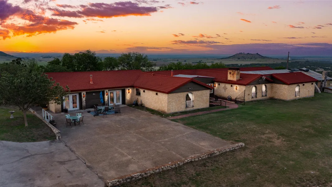 Come see the home with million dollar views! Situated on 175 acres is a one of a kind home unlike anything you have seen. Located on pavement, up on a mountain top, is over 5,000+ sq ft, 5 bedrooms, 3.5 baths, 3 living areas, an indoor pool, multiple fireplaces, and tons of character! Make use of the approx. 126 acres of pasture land with a 2 acre pond, a landing strip and hangar for aviation. Property has perimeter fencing, cross fenced, and is AG Exempt.