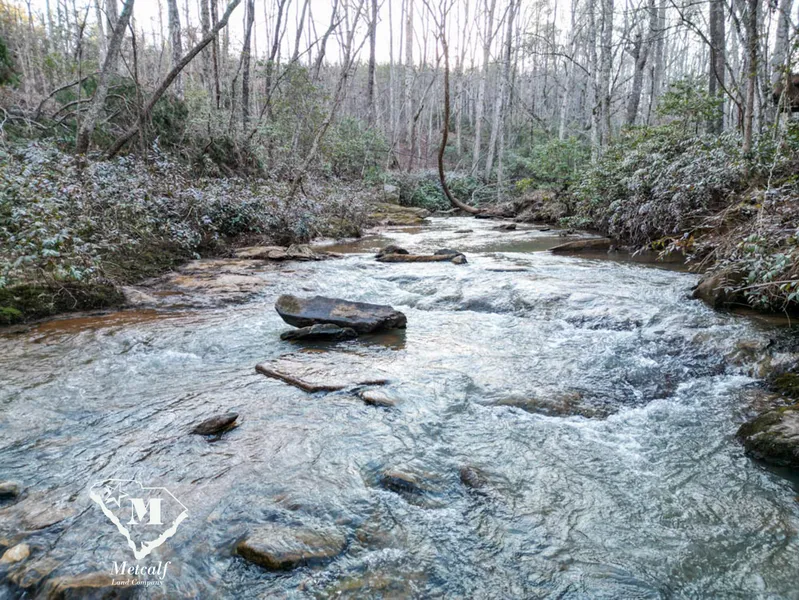 This farm features 495 +/- feet of road frontage on Island Ford Road, which would be plenty to subdivide the property in the future. The topography is "rolling" and varies throughout the land. There is a gentle slope from the road frontage to the creek, along witth multiple different springs on the property.