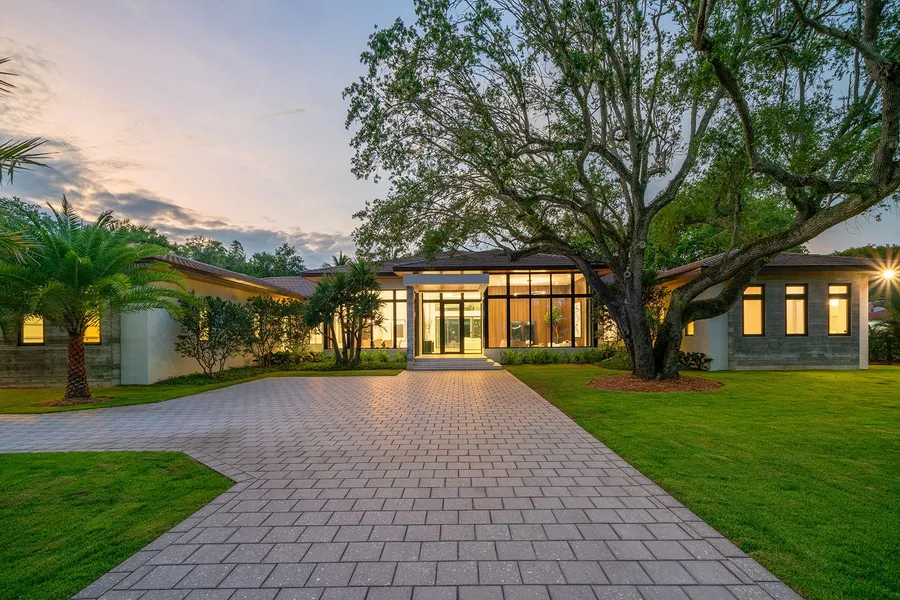 In the heart of North Pinecrest this exceptional single-story residence just completed summer 2024 on a large 175' wide x 223' deep lot. Premium finishes adorn every corner, the kitchen and dining room blend seamlessly boasting sleek lines and ample space for culinary adventures. The living space exudes warmth, enhanced by floor-to-ceiling impact glass windows showcasing breathtaking panoramic views. Adding to the allure of luxury living, a detached guest house connected by a covered breezeway complements the main dwelling. Outside, a lush tropical sanctuary awaits with covered terraces, a heated pool, and a fully equipped summer kitchen. Gated access, media room, gym, full house generator and a three-car garage provide added convenience. Elite Pinecrest Schools nearby.