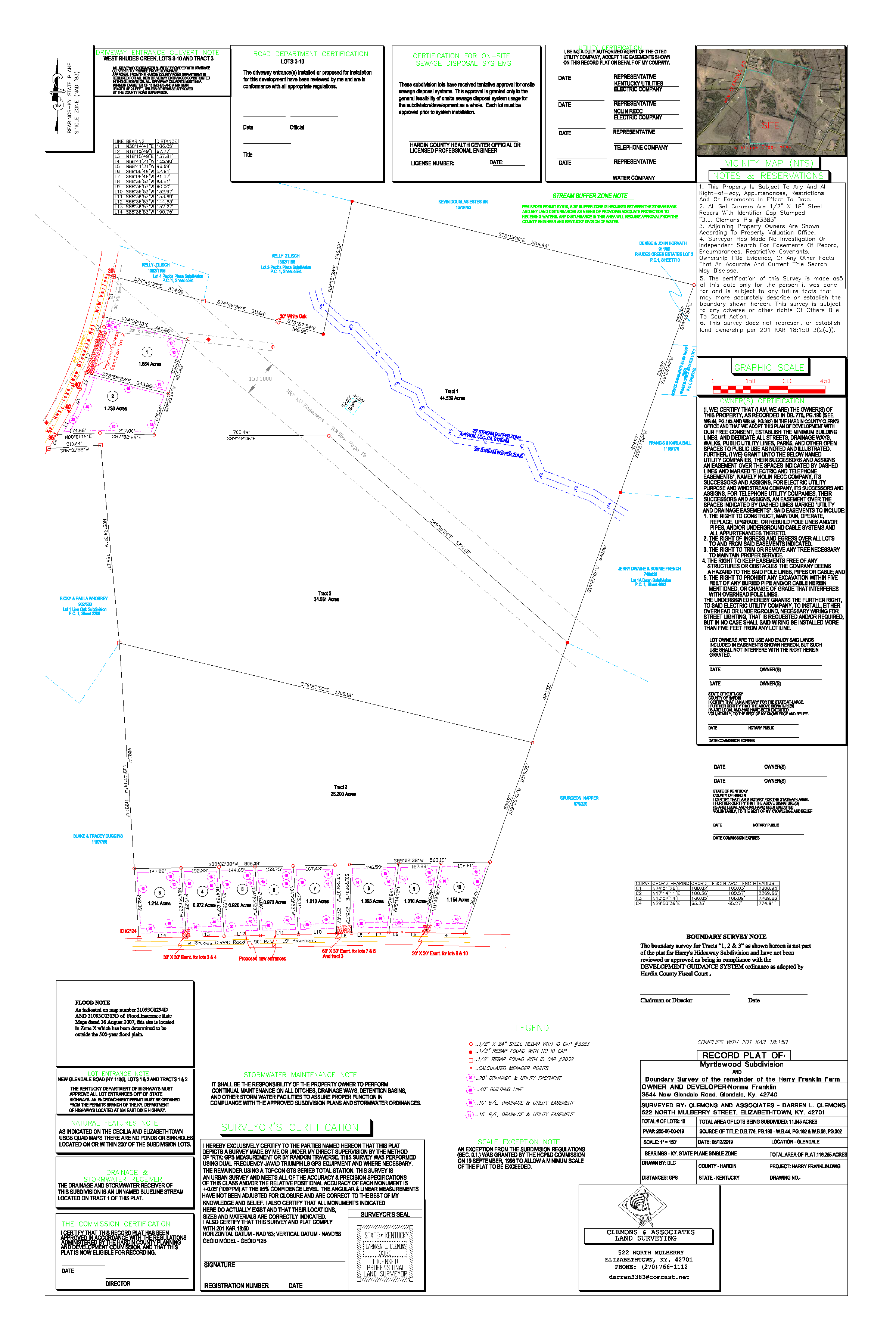 REAL ESTATE: 68.129 acres of land with frontage on both New Glendale Road and W. Rhudes Creek Road. Located just 4 miles from US-31W between Etown and Glendale, the property offers an extremely convenient location while maintaining a rural feel. The property will be deed restricted against singlewide or doublewide homes. Perfect for any number of uses, the land will be offered in tracts using the Multi-Par Method as follows: