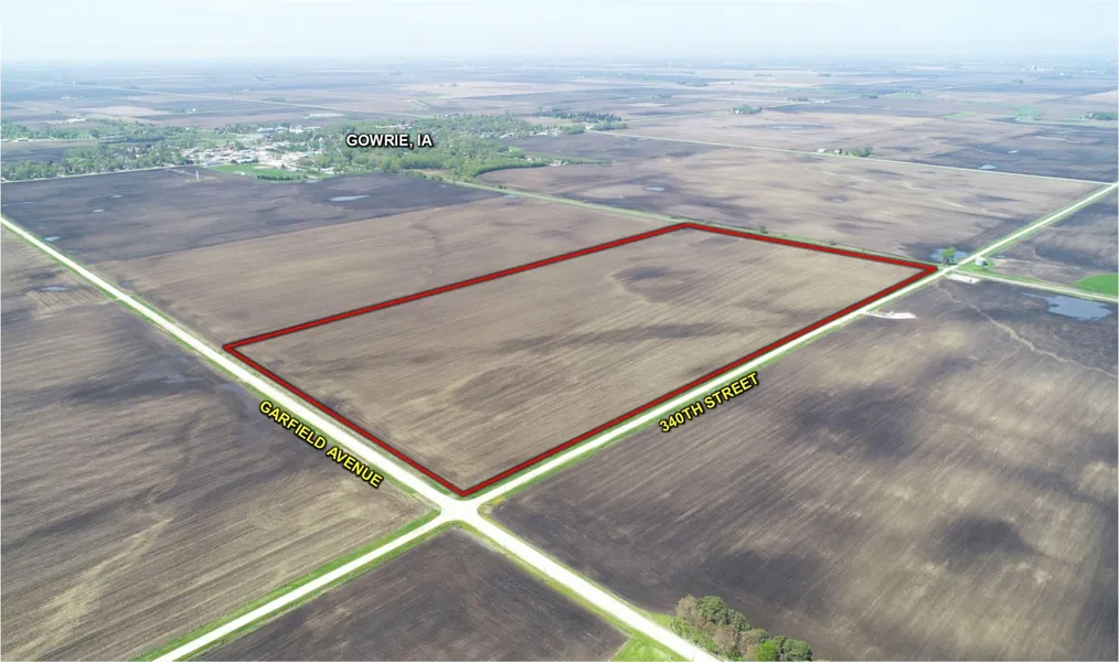 Research Parcel InformationFrom Gowrie, Iowa: Travel east on Main Street until reaching Garfield Avenue. Turn North on Garfield Avenue continuing for approximately 1 mile until reaching the intersection of 340th Street and the property will be located on the west side of Garfield Avenue and the south side of 340th Street. Look for sign.
