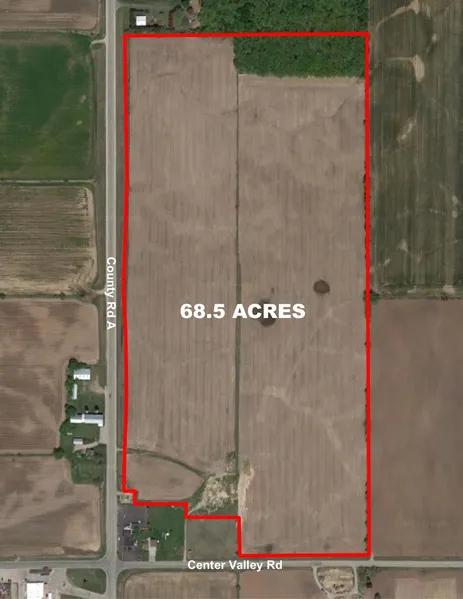These 68 acres for sale consist of very highly productive farmland. The land is well drained and contains a small section of woods in the NE corner. The location of this property near the City of Appleton and the mostly very high terrain, make it highly suitable for potential residential development as well. A grain bin Co-Op directly across the street making for a short haul for crops. There is also a convenience store as well as a bar & grill next to this property. The property is located on County Rd A, also known as Lynndale Dr. in Appleton and is less than 10 miles from Hwy 41 Appleton which is a major state highway with direct access to Green Bay and Milwaukee. This 68 acre parcel available for purchase at $9,975 per acre is just one of 5 parcels totaling 204 acres being sold at intersection of County Rd A and Center Valley. The sellers are willing to sell each parcel separately or as a 5 parcel package. Also available for sale are 19 acres in the NW corner available for purchase at $13,200 per acre, 17 acres in the SE corner available for purchase at $12,750 per acre, In the SW corner there are two parcels available. The east parcel of 43 acres is available for purchase at $8,995 per acre. The west parcel of 54 acres is available for purchase at $7,925 per acre.