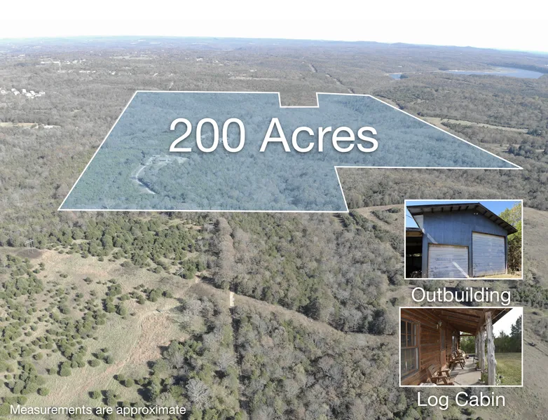 200 ACRES + LOG HOME within 10 miles of Branson in Kirbyville. Hard to find this kind of acreage close in.Log home needs work & is being sold as is, where is-but has loads of potential.Choice of Branson, Hollister, Forsyth high school. Property supported cattle in the 80's but has since grown up with cedar trees. Wet weather creek w/swimming hole & cool rock formations. 3 ponds that need to be worked on to hold water. Appx. 6 miles of ATV trails throughout acreage. 24 x 34 Shop with 8 x 9 OH door & 12 x 12 OH door + addt. sheds. You can restore the pasture & ponds for livestock, or just keep wooded for your own quiet, peaceful corner of the Ozarks! Road getting in is rough but driveable. Little value given to home, but home is livable, just needs work!