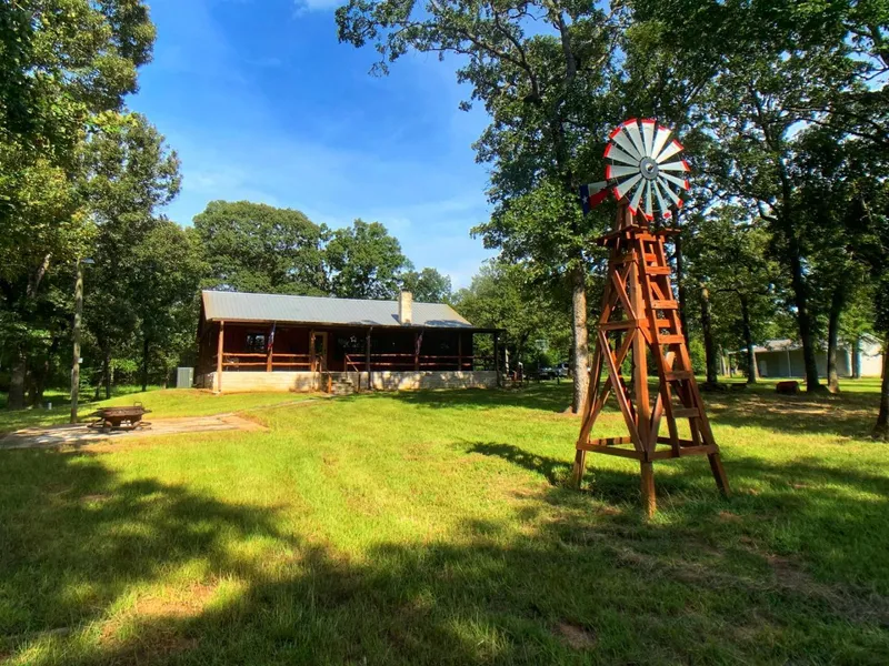 CABIN IN THE WOODS!!! This property has a lot to offer anyone that is looking for a great retreat from city life. This great ranch is comprised of 69.5 acres of land that is a mix of hardwoods and open pasture. The perimeter of the ranch is fenced and there is one cross fence that separates the majority of the pasture land from the woods. The pasture side is about 24 acres and has a pond and a water trough that is plumbed into the water well. The wooded side has good elevation change in it and offers lots of hardwood trees for the wildlife. All of the structural improvements on the ranch are located up near the front. The "cabin" has that quintessential feel that you would expect to find from the moment you step onto the full length covered porch throughout. The living area, dining, and kitchen are located in the center with a high vaulted ceiling and exposed log beams. The master bedroom and bath are very spacious and the closet is a pass through into the large utility room. The second bedroom was recently expanded to accommodate more beds and the third bedroom is on the opposite side with a bathroom in between. The shop is a 1,200 sq ft enclosed structure on a slab that also has a finished out room with A/C in it, roll up doors, and a covered approach running the full length of the building. Water is provided by a private deep water well located near the cabin. There are two ponds on this ranch, one in each pasture. The pond nearest the cabin is the larger of the two, has a wooden fishing pier, and is stocked with catfish. The deer that are in the area are good size and are very typical of the area. Enjoy some rest and relaxation, riding ATVs, hiking, fishing, hunting, or whatever floats your boat on this place. Contact us to make an appointment for your private showing and come check this place out!