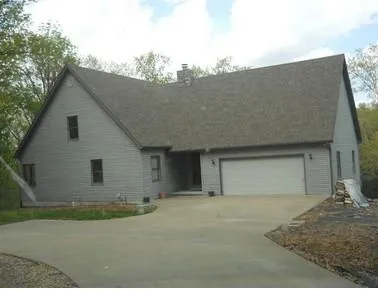 Secluded on 70 acres m/l of wooded land. Custom built home features 4 bedrooms, office, media room, exercise room, storm room, living room w/fireplace, great open kitchen and dining room overlooking pond w/dock. Finished walkout basement, rock waterfall, nicely landscaped, circle drive, close to boat ramps at Bolivar Landing