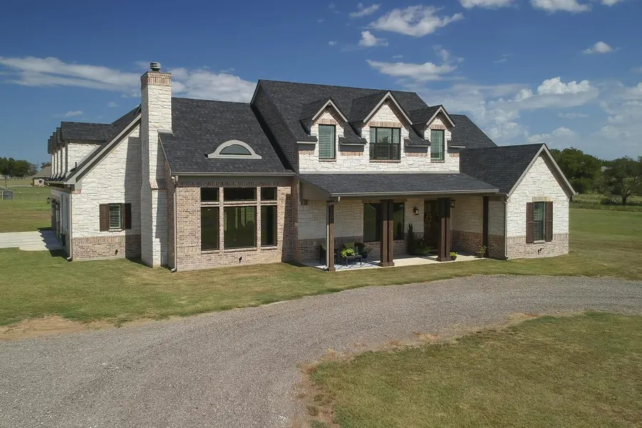 Absolutely gorgeous home on 10 acres with a creek. This home boasts beautiful design elements and incredible upgrades. The family room is the perfect place to curl up on the couch with natural light streaming through large windows, a stunning gas fireplace, and an open floor plan that leads directly into the kitchen & dining area. With a wood burning fireplace, beautiful chandelier & huge windows the dining area is the perfect place to linger with friends. The kitchen is absolutely stunning with quartz counter tops, Carrara marble back splash, over sized island with overhang, a Gallery Frigidaire, huge walk in pantry, and Bosch appliances. The master suite is the perfect escape with a soaking tub, spacious shower, beautiful wood vanities & Carrara marble work. Each bedroom boasts a full sized bathroom and the upstairs offers a game room (unfinished). Spread out on 10 +/- acres that boasts open pasture and heavily wooded area with a creek running through the property. This is a beautiful property, you don't want to miss it!