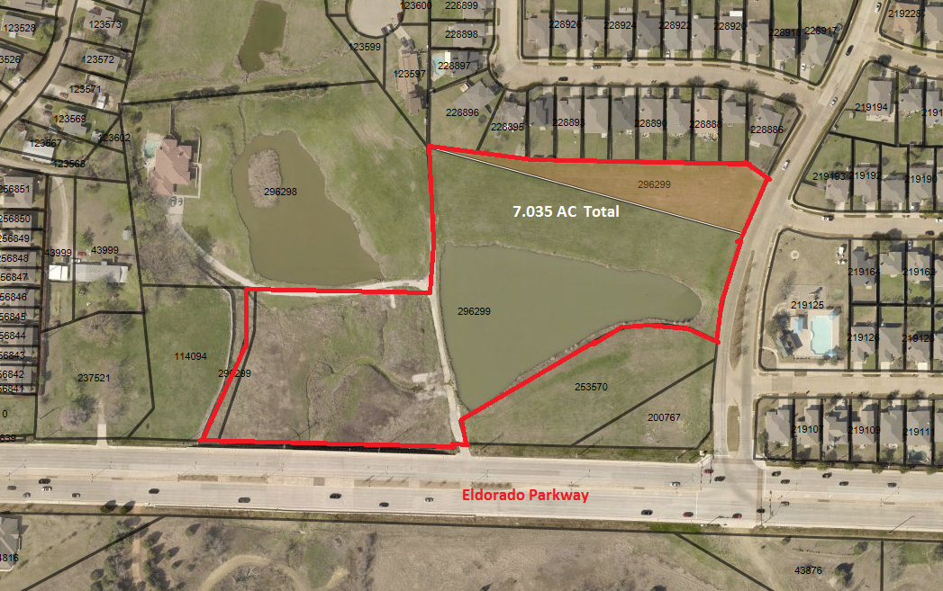 7.035 AC Eldorado Parkway Little Elm TX. PRICE REDUCTION due to new survey showing 2.525 AC outside of flood zones.