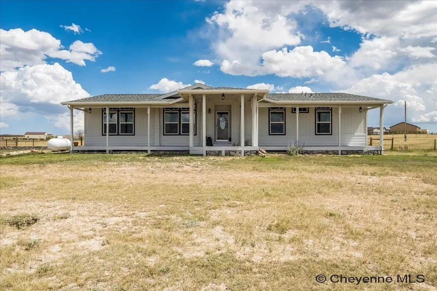 Welcome to 1889 Road 109 where you can experience true Wyoming country living! The 7.06 acre property features a well appointed 1,612 residence, 42x54 shop and a ConEx Storage container, all with spectacular views to the west! The home is the perfect blend of simplicity and modern convenience. Gorgeous remodeled kitchen includes a butcher block island, slab wood countertops and custom cabinetry. High end appliances with a Kitchen Aid gas range will get the culinary juices flowing! The kitchen boasts a large breakfast nook when you don t need the space of the large formal dining room with amazing western views. A sunken living room features custom tray ceiling and a gas stove for those cozy fall evenings. The primary suite features a large walk-in closet and remodeled ensuite 5-piece bathroom with jetted tub, walk-in shower and dual sinks. Bedrooms 2&3 share a fully updated bathroom with tile flooring. The laundry room includes washer & dryer. In between the main living space and the oversized 2-car garage is a large mud-room, perfect for keeping things clean in the home and offers additional storage. The garage is equipped with dual overhead doors with openers. HVAC is modernized with forced air heat and central A/C. The home has a class 4 roof and new gutters. Enjoy the sunsets on the west-facing covered front porch, and sunrises on the east facing composite deck. The Morton shop is nicely upgraded with a concrete floor, dual 10 doors plus a standard door on the south side, a 1/2 bath with wall heater and tankless water heater, air filtration and very well lit! Many of the shelves and cabinets stay with the property and the shop has much of the insulation already installed. A ConEx container stays as well for even more out-of-the-way storage. You ll find plenty of fenced off pasture, yard, gates and a tree line with drip system, making this property ready to move into so you can start enjoying the west!
