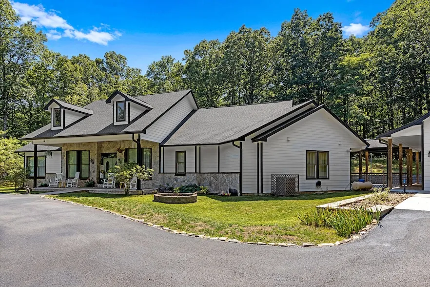 Nestled with the pristine Fredonia Mountain Nature Resort, 157 Twilight Trl is more than just a home - it's a private sanctuary. Spanning 7.07 acres this property offers both serenity and boundless potential. *Over 10 acres of adjacent land for purchase* Located in the gated community, the home is a spacious 4 bedroom 4.5 bath retreat with it's own Private Entrance Suite (bedroom 4/bath 3) with mini-kitchen, great for relatives or visiting guests. The Suite has its own thermostat. You'll enjoy the stacked stone fireplace with/gas starter and blower for those chilly nights. French doors lead out to the screened-in porch with room for entertaining. For those cooler days when you don't want to run the A/C, the Whole House Attic Fan will bring those outside temperatures in. All on one level with the exception of a heated/cooled (wall unit) teenage/guest/office suite over the garage with full bath (bath #4) which includes a built-in desk and walk-out attic storage. A new HVAC(heat pump) unit was installed in 2020 and a new roof with architectural shingles in 2022. The 2 car detached garage, accessed by a covered breezeway, includes ample storage. Walk through the door in the back of the garage and you'll find a custom workshop with a utility sink and radiant floor heating. There is a separate building with electricity next to the garage for additional storage; a golf cart or UTV space is attached. The house is secured with a Front Door ''Ring'' doorbell, outside cameras with monitoring and wireless alarm system. 42'' encapsulated crawl space with humidity control, Anderson windows and doors. The home has 220 volt wiring with a separate panel for a home generator. The home is nestled among a 3,500 acre resort called Fredonia Mountain Nature Resort, which makes up 5 distinct gated neighborhoods with a staffed security office at the main resort entrance.