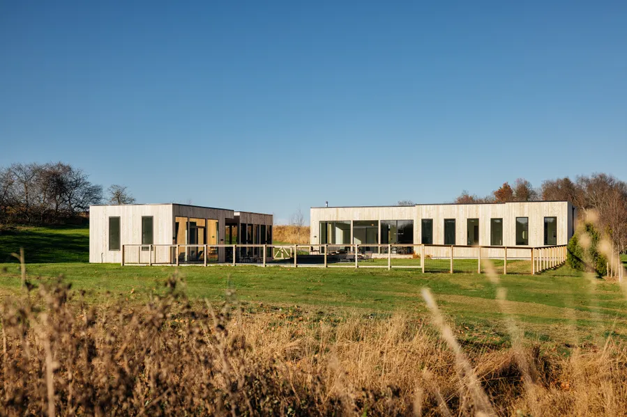 A new twelve-home community in the highly sought-after Hudson Valley, Fox Hollow is tucked away on a secluded site between the bucolic towns of Tivoli and Germantown. RIFT is an exquisite single-story structure, offering a considered solution for simple yet luxurious living. This 4BD, 3.5BA home is thoughtfully laid out across 2,675 square feet with a large, windowed, full height basement and designed with a modern minimalist silhouette that plays artfully against the gently rolling hillside of the 8 acre lot. RIFT offers additional options including a heated gunite saltwater pool, an outdoor kitchen, Delta Millworks black stained cedar siding, a two-vehicle carport with optional electric car charger and more. Inspired by Scandinavian architecture, Rift is a serene refuge, blending minimalism and functionality while incorporating a singular material - White Oak - throughout all the inter...