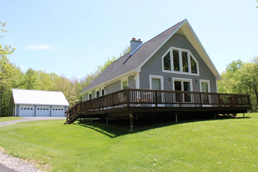 Uniquely tucked in the woods, this three bedroom, two bath cape chalet is a picture of perfection. The great room is an exquisite gathering space with mahogany floors, cathedral ceilings, a loft and large windows. The wrap-around deck is ideal for enjoying nature. A detached 30 x 40 three car garage incudes second floor attic storage and 100-amp electrical service. A quality Amish built 30 x 56 pole barn has a 12 x 14 commercial overhead door and opener, 3 season water, second floor attic storage and 100-amp electric service. The 12 x 24 storage shed/pavilion is excellent for additional space. Everything has been tastefully updated with high quality items. This property is perfect for the outdoor enthusiast/hobby farmer. Pride of ownership shows everywhere, this is a must-see property!