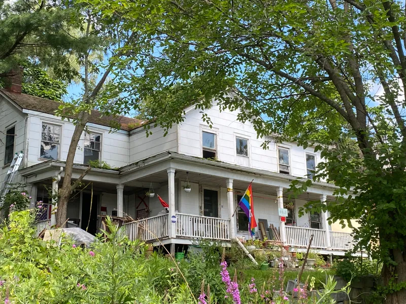 So many possibilities! The old farmhouse is probably beyond saving, but this property has so much else to offer. Amazing 3 story barn that could be an incredible home or business and several other outbuildings that could be studio space or anything you can imagine! The property is a prime corner lot (Leeds-Athens Rd and 9W) with a generous 7.12 acres and is zoned mixed use.The current owners started converting the barn, there is brand new 200 amp service and they have an engineered septic plan that could convey, there is also a new well pump. There are other possible building sites further back on the lovely property which has many 200 year old pines, black walnut, Catalpa and Willow trees.The property was previously the Rapps antique business. Please be aware that the main house has major structural issues (floor joists are being held up by stacks of cinder blocks, major water damage). Camper on site could be included for a place to stay while working on it.