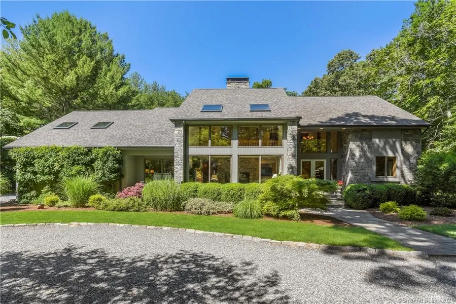 Indoor pool and spa! This custom built home is gorgeous in all seasons, a wonderful home for many reasons. Park-like wooded grounds, 7+ acres provide exceptional year-round privacy from all sides. Belgian block rescued from the streets of historic New London line the circular gravel driveway. Wood, stone, and glass characterize this spacious contemporary home. An open floor plan is immediately apparent from the entrance and continues to flow smoothly between rooms. A large two-story, two-sided granite stone fireplace with a Vermont Castings wood stove on one side and a wood-burning fireplace on the opposite side anchors the center of the home complimenting the stone on the exterior. Step down into a two-story living room illuminated by large windows and skylights. Step up to an intimate dining room conveniently adjacent to the kitchen. In the rear of the home, the kitchen is flanked by a...