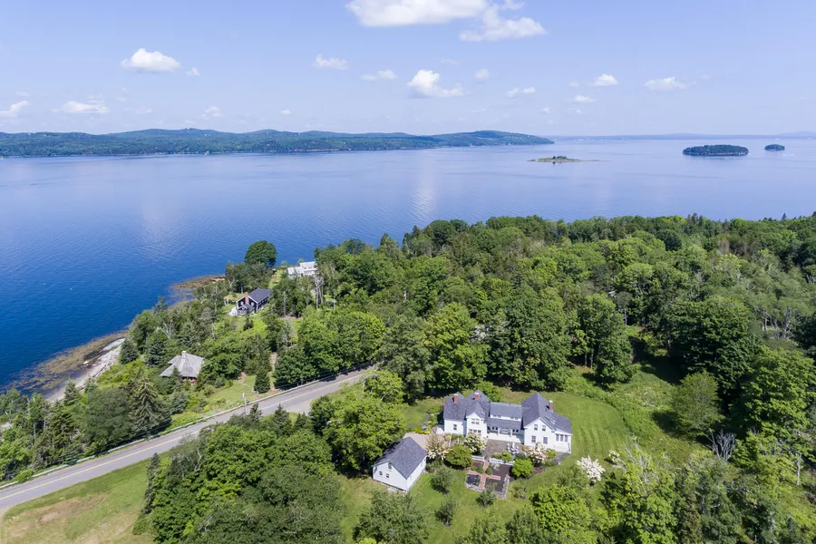 This iconic property is prominently sited on 7.22 acres on the highly desirable West Bay Road with stunning views of West Penobscot Bay and the Camden hills, and 500 +/- feet of beach frontage. There are two properties with this listing, the main residence at 400 West Bay Rd. and the cottage at 391 West Bay Rd., both year round structures. The main house is a beautiful example of New England architecture and has changed ownership only twice in almost a century and it has been impeccably restored and renovated by the current owner. The 6 bedroom main home has a formal dining room with a fire place, a chef's kitchen, a spectacular wood paneled great room with fireplace, a conservatory, and lovely grounds. The shingle style guest cottage at 391 West Bay Road was built in 2009 to the highest standards and includes one bedroom, a full bath, a large living room/office with wood burning firepla...