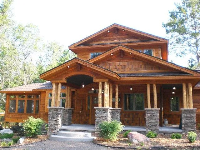 MLS 827922. Webb Lake. Burnett County. Very private 7.32 wooded acres and 153’ frontage are the perfect setting for this Craftsman style builder’s personal lake home on Lower Webb (north of Hwy 77). Beautifully landscaped with multi-level paver patios with fire ring, waterfall feature, boulder walls & granite steps. Moderate elevation with log steps to sand based shoreline with L-shaped dock with bench. This high end chalet was used as the builder’s model and has many of the showcase designer features you would expect (and want) in this bracket. 3-textures of cedar on the exterior, pine stained interior, 9 ft ceilings, wood flooring, stone fireplace. Gourmet kitchen with granite counter-tops, custom cherry cabinets, stainless steel appliances. Wet bar with wine cooler, sink, and cherry cabinets. Whole house Lutron lighting system, sound/entertainment system. Master suite on the main level. Guest suite in the loft. Attached screen porch. Full garden level basement, 1618 sq. ft. with part of the basement partly finished. $729,900.