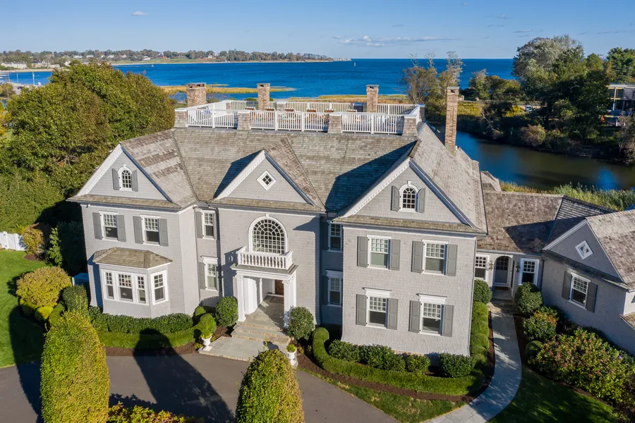 Long Island Sound waterfront offering breathtaking Sound views and sprawling green lawns. Conceived to take advantage of its majestic setting with endless water views from all floors, with privacy and abundant recreation opportunities inside and out. With extensive frontage on prestigious Beachside Ave, it's clear that this 7+ acre Long Island Sound estate property is like no other. Thoughtfully designed by renowned architect Jack Franzen, the home features well-proportioned rooms that never overwhelm: perfectly envisioned for daily living but easily accommodating guests as in the attached 1200SF guest house. Two spacious offices offer expansive water views and connect to multiple porches. Soaring 10ft ceilings fill the open plan with light. Lounge by the pool, serve guests in the fully-equipped pool house. Perfect your golf game at the home's ProLinks Par 3 golf hole. Take the golf cart over to Southport Beach. At sunset, move to the home's 900+SF roof deck for the 360-degree views or head to the home theater or gym. The property even includes a 3-acre private pond with a serene wildlife preserve full of herons and egrets, a cedar dock for kayaks and cocktails, and winter ice skating. Outfitted with every high-end amenity including Control4 automation and an elevator. Easily gated, this home offers privacy and security. There's simply no estate along this prestigious stretch of Long Island Sound coastline that offers this complete lifestyle and a home this exceptional.