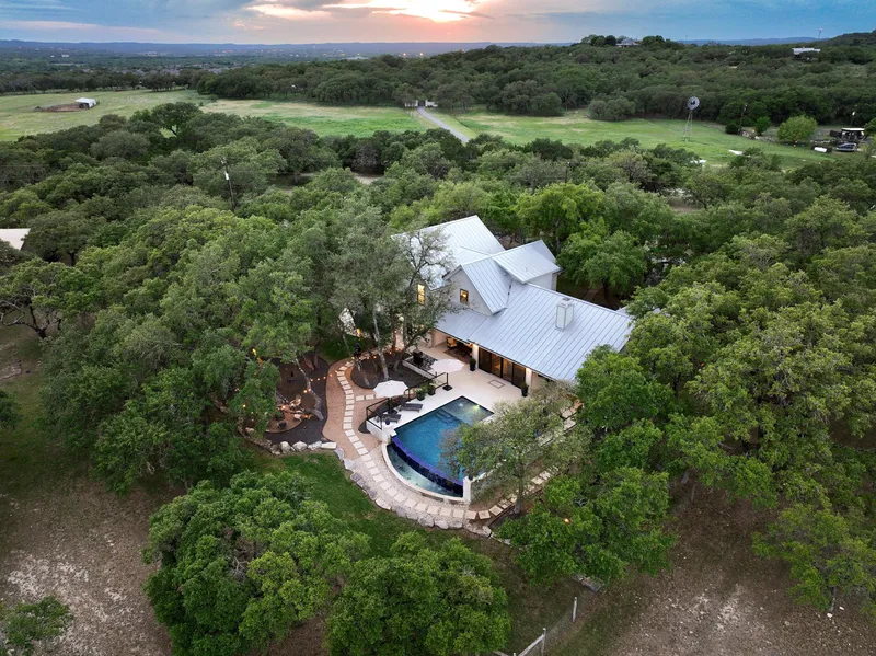 Welcome to 115 Woodland Ranch Road in Boerne, Texas! A rare and exceptional property that is sure to meet all your needs. Woodland Ranch Estates offers the perfect blend of country living, small-town charm, and San Antonio convenience. This fully updated modern farmhouse home offers new amenities with a hill country flare. 7.3 oak studded acres, 3,562 square feet of newly remodeled living space, 4 bedrooms, 3.5 bathrooms, dedicated office, media room, infinity style pool, and oversized barn ready to be converted into additional living space. The abundance of oak trees on the property offer a park like setting that boast beautiful views of the Texas Hill Country and amazing sunsets. Upon entering the home, you're welcomed into the great room with a view that overlooks the stunning infinity pool. With an open-concept design, the kitchen features high-end stainless steel appliances, quartz countertops, custom cabinets, and a large island that doubles as a breakfast bar. The kitchen window offers an unobstructed view of the acreage, bringing the beauty of nature indoors. The spacious dining room flows easily from the kitchen and great room for easy entertaining, along with the built-in bar that is just waiting for guests! Whether you're hosting an intimate gathering or a large celebration, this space is sure to impress. Downstairs you will also find the spacious owner's retreat, with a private entrance and view of the infinity pool. Along with the dedicated office, a bath, oversized pantry, laundry room, and extra storage space. Upstairs is the media room with wooden beams and a view of the property, two bedrooms with a Jack & Jill bath, and one bedroom with its own ensuite. Moving outdoors you'll find your private oasis. Entertain family and friends or enjoy a quiet starry night on the resort-style private patio and a swim in the infinity edge pool. Play a game of disc golf, or enjoy s'mores around the fire pit. Bring your extended family, the property is set up for multiple generational living with a 6-car, 2-story barn ready for conversion. A second septic system and electricity are already in place for the conversion. A garden shed with electricity also provides plenty of space for extra tools, mowers etc. Literally minutes from Boerne, this quiet location hosts a wide variety of wildlife. From flocks of cardinals to Whitetail and Axis deer. Welcome to 115 Woodland Ranch Road, where you will find the tranquility of nature without sacrificing easy access to conveniences. Enjoy small town living and dont forget about the highly acclaimed Boerne Independent School District!