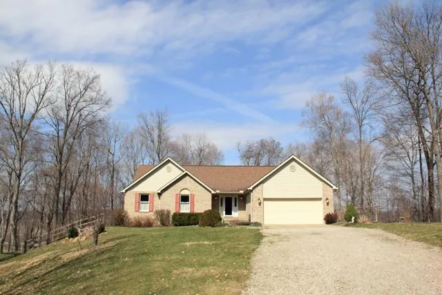 (SOLD - August 2012) Hillside & ridge-top splendor amidst the Hocking Hills Region, near Rock House as well as the Hocking State Forest...heres an upscale and very clearly quality-built ranch with plenty of stretching space outside and in. Set on two heavily-wooded parcels totaling almost 12 acres, the property offers views across the Laurel Run Valley, trails and lifestyle options. The spacious-plus multi-level deck plus lower walkout patio suggest plenty of uses for entertaining or just relaxing, and the fenced rear yard offers play and resting spots. Inside youll discover a truly grand great room with soaring cathedral ceiling and deck walkout, plus dining & sitting areas, and an open-design kitchen and office area also with deck entry. The main living level also features a most inviting master suite with extra-large walk-in closet and bath with soaking tub and large shower. And of course, theres much morethe lower level provides an abundance of quite finely finished living & work space, including a possible fourth bedroom or den. And theres also a very spacious work and utility room with built-ins and patio walkout. You will find everything in superb condition, and more than ready for you as an exceptional primary home or weekend retreat. And you will also appreciate that the home is within the Rated-Excellent Logan Elm Local School District! Additional 4.58 acres available.