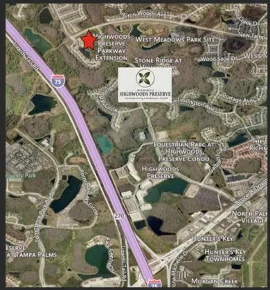 Location: The site sits just south of the corner of the new I-75 overpass for New Tampa Boulevard and Highwoods Preserve