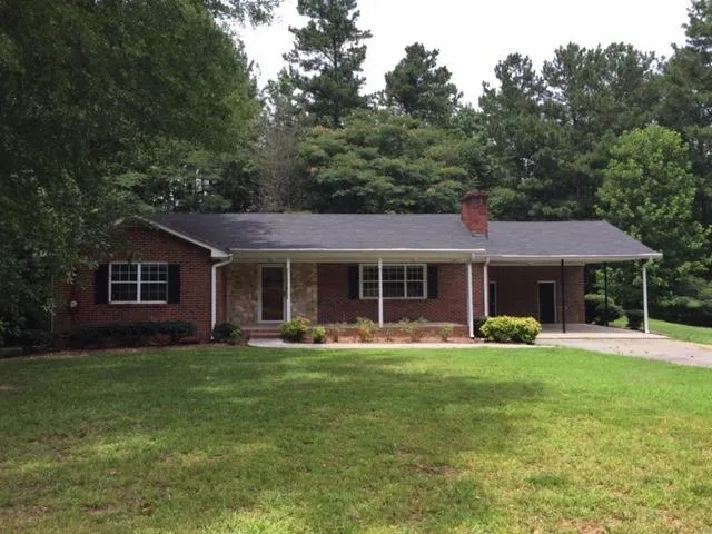SOLD! 4 sided brick home located between Cartersville and Dallas, Georgia. Level front yard. Three bedroom, 1 bathroom with ceramic tile floor in bathroom. Large living room with fireplace. Dining room opens to spacious kitchen with tile backsplash, covered porch/deck off the back of the home. 2 car attached carport with 2 storage closets. Wood floors in living room, foyer, hallway and all three bedrooms. All of this on 7 +/- acres.