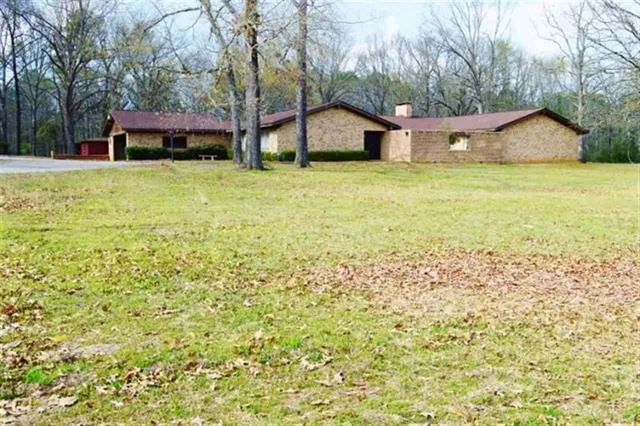 Spacious 4 Bedroom 3 and a 1/2 bath Brick home in a prime location on Hwy 59 with over 7 Acres! Large comfortable great room and custom kitchen with