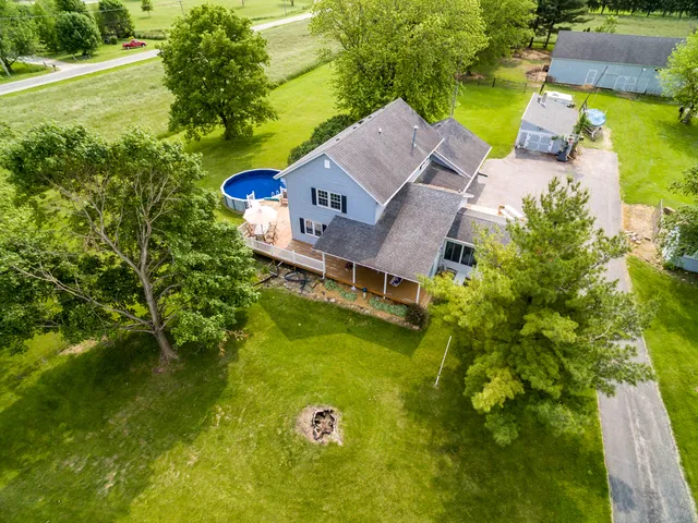 This is the home you've been dreaming of and planning for your whole life!! Beautiful 4BR, 2BTH nearly 2200SqFt 2-story on 7.44 stunning acres!! The flowing & functional design is perfect for entertaining with centrally located kitchen boasting cathedral ceilings, upscale raised panel cabinets with crown molding & pullouts, granite counters, breakfast bar/island & sliding doors to sunroom. Main floor can easily accommodate large gatherings & that doesn't even include the "huge" partially finished basement. Entire interior recently painted, contemporary main level bath remodel & new carpet in bedrooms are just a few of the many features & upgrades. Option for main or 2nd floor master bedroom allows you to decide what works best for your needs (could be great for related living). Enjoy every amazing sunrise & sunset on nearly full wrap around porch & crystal blue water of above ground pool just in time for summer!! Heated, attached 2 car garage. Large barn & two additional shed/outbuildings already set up for your horses (no more paying boarding fees), goats, chickens & all your indoor & outdoor toys - and a property with plenty of room to enjoy them!! Never worry about running out of propane or electric this home has natural gas and a whole house generator & sits on high ground. Unpack & enjoy!! CHECK OUT PHOTOS OF FEATURE SHEET & SURVEY FOR MORE INFO.