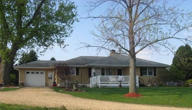 The residence is a ranch-style brick home with a 1 stall attached garage and a 2 stall detached garage. It was built in 1983 and has 1,404 square feet with an additional 1,404 SF of living space on the lower level. There is one bedroom on the main level with 2 additional bedrooms on the lower level. The open floor plan of the main level makes it a great space for entertaining. The full bath on the main level has a whirlpool tub and a separate shower unit. There is a half bath located within steps of the entrance from the garage into the house. The living room has a gas fireplace and double doors that lead out to a wooden deck that overlooks the timber. The kitchen has linoleum floors and an eat-in bar area. All appliances are included with the sale but are not warranted. These include a refrigerator, microwave, dishwasher, built-in oven, countertop stove, washer and dryer. All bedrooms have double doors and plenty of closet space. The laundry is located on the main level in the full bath. There is walnut trim throughout the house (excluding the kitchen) which came from the farm. The walkout basement has plenty of room for storage and a family room with a wood burning fireplace. There is a 3/4 bath as well. The outside entrance leads out to a concrete patio area. There is a 6’ x 16’ white vinyl front porch that overlooks the rolling hills of the farm and the 1/2 acre pond. This home is move-in ready and a must see!