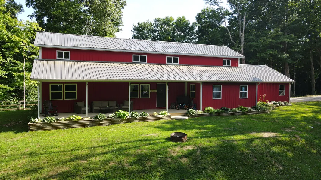Looking for a secluded retreat in the woods? A newer, low maintenance home? This beautiful Amish built home features an open floor plan that is ideal for families. The living room features soaring wood, cathedral ceilings, lined with log railing. This home has rustic, yet modern features. Enjoy cooking and entertaining in the kitchen that features a walk-in pantry, granite counters and stainless steel appliances. Enjoy the outdoor space that features a nice deck with a hot tub, a playhouse for the kids and nature abounds! The pole barn is an added bonus - 30X40 with electric and concrete floors. There is a small creek on the property as well!