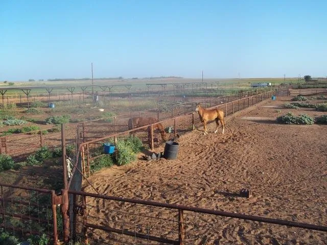 Outside, it just gets better. The acreage totals 7.6 acres with most of it in pipe, cable and net-wire fencing that's perfect for horses and small animals. With several separate shaded holding pens, covered stalls, large grazing lots and a riding / roping arena, it's all here and ready for your animals! The water well is piped into the pens and can be switched to city water, if preferred. Storage sheds and tack rooms complete the package!