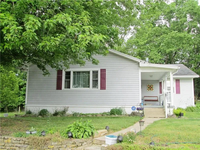 You don't want to pass this one up! Secluded country living on 10 acres with great views of a pond, pasture, and woods! Almost 1700 square feet of open living space plus over 700 square feet of enclosed back porch that is/can be heated and some AC. This back porch is a must see and really a place to hang out! Enormous amounts of storage inside and out with a detached 2 plus car garage and large barn that has been used for livestock and more. You'll know your home when you drive up the curved lane, past the barn and see the beautiful pond and pasture land on the way to the house on top of the hill. Only about a mile from I-70, but you'll never know it. A spring water well and geothermal heat round out the benefits of this home! Don't miss this one!