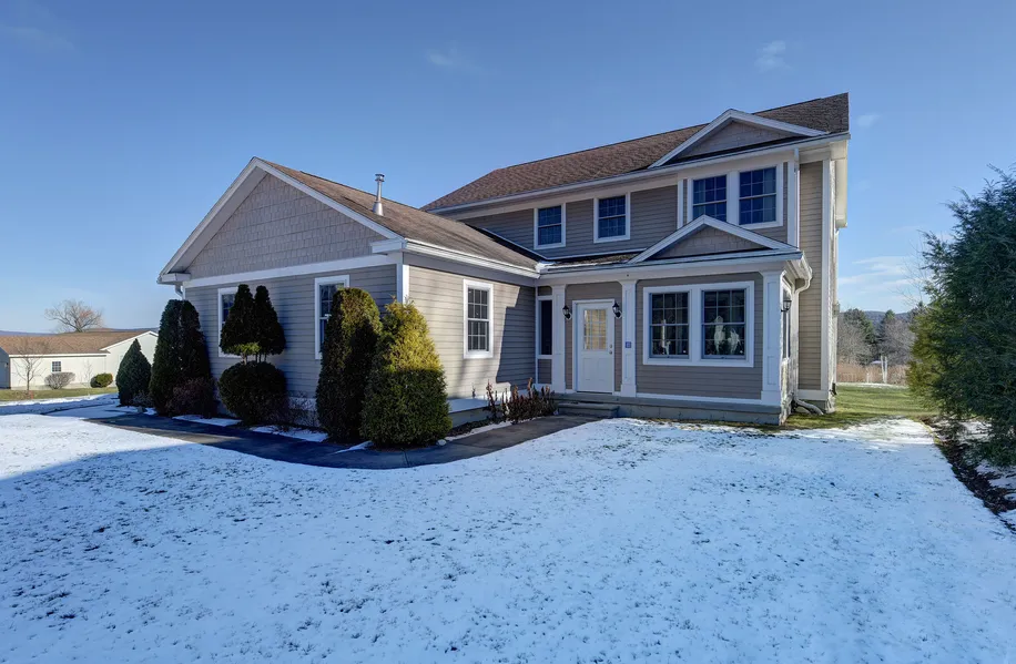 Beautiful Berkshire Mountain View Home with Land to Build. Enjoy easterly views of October Mountain close to Lenox for Tanglewood, shopping and all cultural attractions. This newer home is move in ready with easycare low maintenance features -what a treat in this market. Sunfilled spaces and open floor plan concept. Custom kitchen with two tone cherry cabinets and breakfast bar. Breakfast nook perfect to take in view with slider to deck. Formal Living and Dining share the fireplace warmth. Enclosed front porch for a little getaway. Gracious and Spacious Primary Bedroom Suite with Soaking Tub to let Calgon take you away with the view. Wood floors throughout. Finished lower level expanding living space. Cabinet storage attached garage. Capture Berkshire Living at Home. See it soon