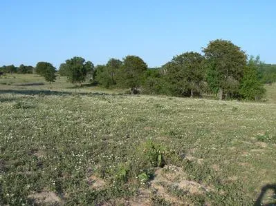 Pretty hilltop view - great place to build or put your mobile home. There ish a nice pasture in front dotted with oaks and a dense grove of native trees behind to provide cooling evening shade. Property is fenced in front and 2 sides. Water and electricity are already in place. There is an old mobile home that can be removed. This property is unrestricted.