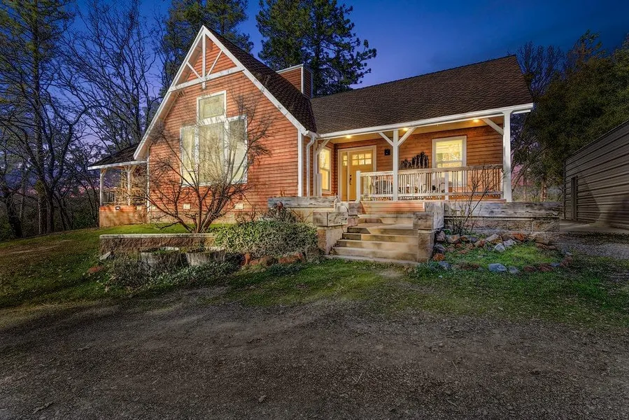 Private, country living with modern conveniences in this custom-built home nestled on approx. 7.7 acres. Light and bright interior with gorgeous views from the living room windows along with open beam, cathedral ceilings. This wonderful home lives like a single story. The main living provides an amazing great room style floorplan with a cozy wood burning fireplace. The kitchen has granite counters with a butcher block island, loads of cabinetry and counter space and a formal dining room. The primary bedroom is nicely sized with a walk in closet and outdoor access to a covered deck. The primary bathroom has a romantic soaking tub, dual vanities and a stall shower. A spiral iron staircase leads to an upstairs loft/possible 4th bedroom. Laundry is made convenient with an indoor room that features additional linen cabinetry. Two secondary bedrooms and a shared bathroom are located on their own secluded wing of the house. A detached two car garage allows for lots of storage. There is an approx. 500 sq. ft. separate dwelling with a kitchenette and living/sleeping space - perfect she shed or man cave/home office. Enjoy several recreational locations such as Collins Lake, Bullards Bar and the Yuba River. Welcome Home!