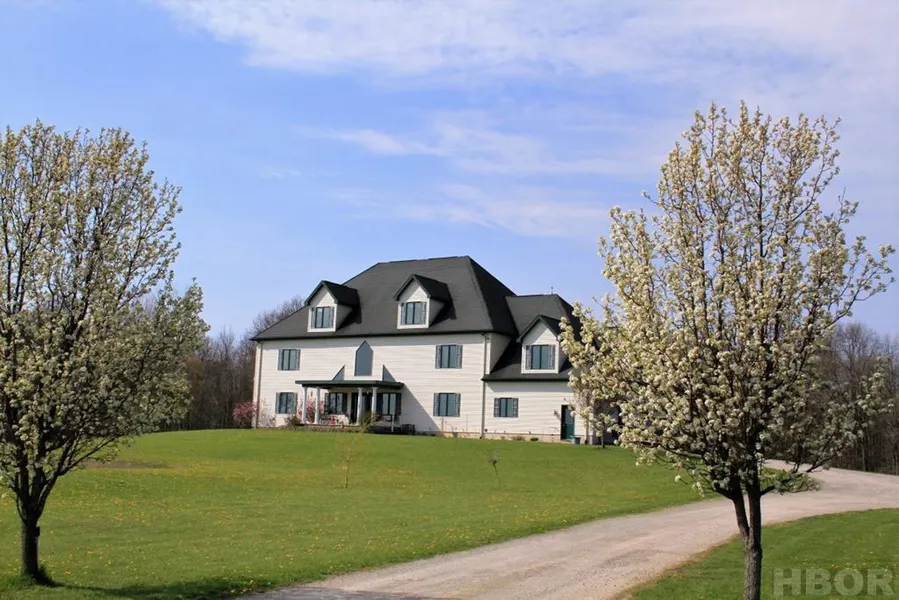 Imagine driving down your own tree lined lane, past your 1/2 acre pond to your amazing 4 story beautiful home on 7.738 acres. Additional acreage in front of the property could be sold with the home for an additional cost. Entry way showcases the open floor plan and steps leading to both sides of the home. Abundance of windows with spectacular views of nature and wildlife from all angles. Top level adds many options of uses, currently being used as a master suite with open concept and high, dramatic ceilings and skylight windows, stone fireplace, also includes a huge closet and full spacious bathroom complete with glass shower and tub. Full finished walk out basement with 2759 sq feet including a Media room and full bathroom. Surround sound through out the home. Four outbuildings on the property 30x88, 30x50, 24x50 insulated and 16x32 insulated. All outbuildings have concrete floors and 1...