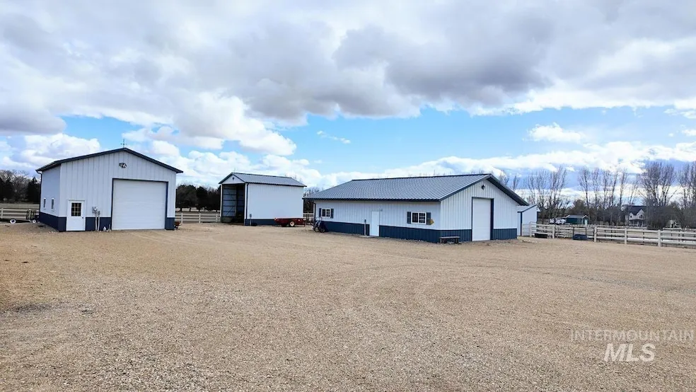 Welcome to Equestrian Paradise! Captivating home nestled in heart of Middleton beckons passion for equestrian lifestyle. 7.75 Pristine Usable Acres. Custom Built Home with 2x6 construction. 4 bdrm 3 bath retreat spans over 3,400 sqft, perfect blend of comfort & style. Chef's kitchen w/double wall ovens & Wolf range top. Main level Master. High ceilings throughout create an airy & open atmosphere. Bespoke 36'x48' barn stands as testament to thoughtful design & equestrian excellence. w/four 12'x12' stalls, 2 tie stalls, 16 sqft tack room & 12'x12' storage area, this barn is sanctuary for your horses. Automatic heated waterers ensure their comfort & care. Entire property graded, fenced & usable. Fenced pastures, sturdy barns, well-constructed shelters & sprawling 170'x130' arena. 24'x38' Shop w/two 12' doors. 110 & 220 hookups, separate 200amp service from house. 24'x30' hay shed. Your equestrian dreams await.