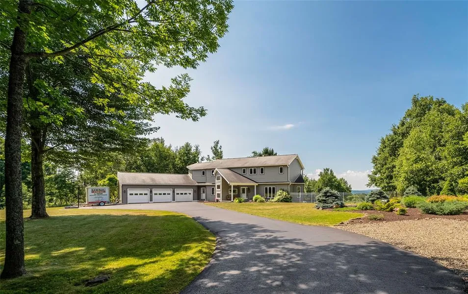 Beautiful and extremely private home sits on over 7 acres with an amazing view for miles! Homes sits back off road and has a fenced in yard with an in-ground fiberglass pool facing the views. Surrounded by professional landscaping, large patio for entertaining and a multi-tiered deck overlooking it all. Also a separate fenced area for pets! Enjoy the peacefulness on your covered front porch or enjoy some fun with friends around the fire pit, surrounded by woods. This home can be 3-5 bedrooms if you choose! 3 full baths and 1 half. The kitchen has a large island to sit and enjoy one of the 3 fireplaces. Great for entertaining, the formal living room shares with a formal dining area w/gorgeous views out the large picture window. Master suite w/fireplace, large walk-in custom closet. Finished walk out lower level can be a great in law space or just fun for the family to use with another Ful...