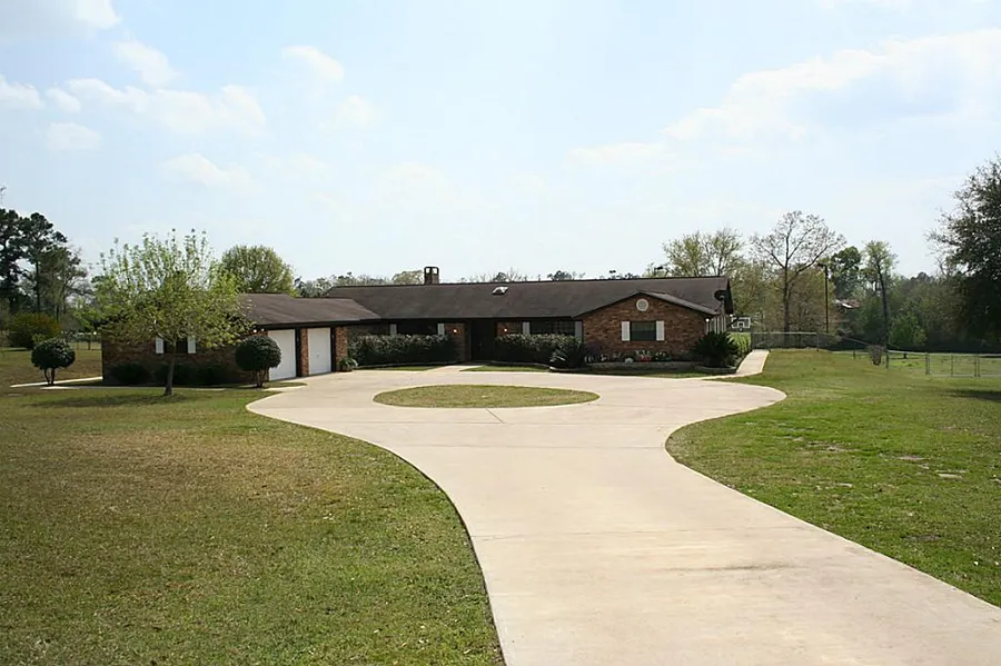 This beautifull Custom built 3354 square foot brick home located outside the city of Woodville on 7.78 +/- acres fenced.Features 3 bedrooms and 2 1/2 bath,cetedrel ceilings in the den and formal living,with a fireplace in each,kitchen with a island,formal dinning,recessed lighting,trash compactor,dishwasher,custom window blinds,sky lights,two a/c heat units,and two car garage.The property also features a salt water pool, lighted basketball court, horse barn,and irrigation system for yard.