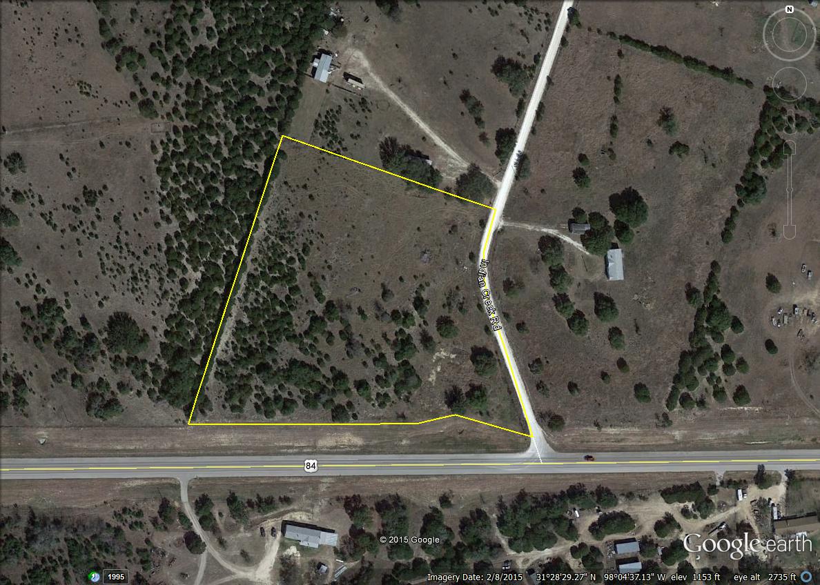 7.8 acres east of Evant, TX in Coryell County. The property is located on the corner of Hwy 84 and Indian Creek Road. The property has good tree cover with nice views. Coop-Water is available and electrcity is on the property. The property is centrally located being 20 miles from Gatesville and Hamilton.