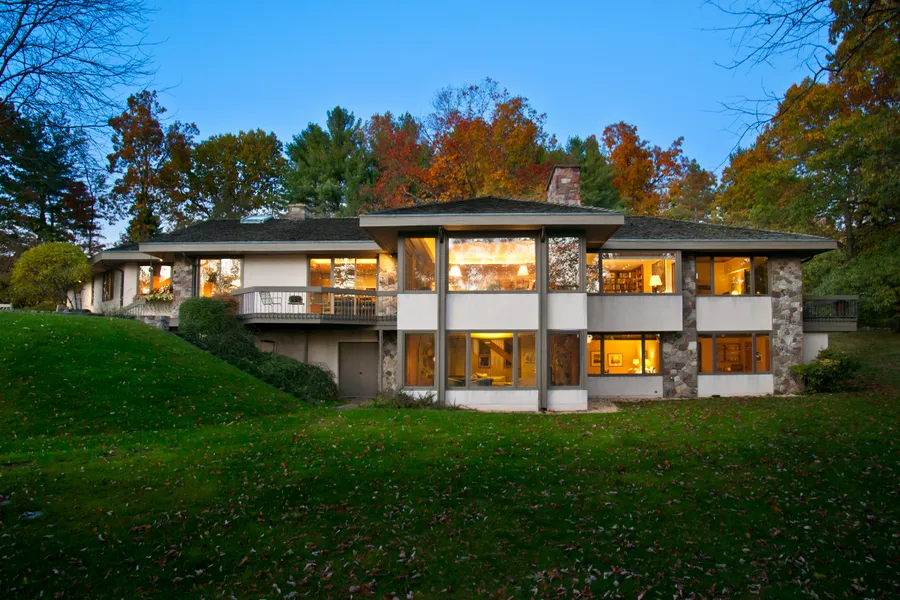 First time on the market in over 40 years - An unparalleled park-like 7.8 acre estate located in the heart of Round Hill. Designed by noted architect Edgar Tafel, a disciple of Frank Lloyd Wright, this Modern home features sculptural elements, natural light and generous southwest views. Enjoy entertaining in the spacious living and family room both with fireplaces, as well as the bright dining room. First floor primary suite, four additional bedrooms, four full-baths and one half-bath, multiple decks and a terrace with a beautiful free-form heated pool. This spectacular property offers a fabulous opportunity to create a private retreat in a bucolic setting.