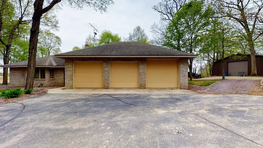 Quality Craftsmanship shows throughout this Rod Berg built executive ranch nestled in 8 beautifully wooded acres. Sit in the large 3 season sun-room and enjoy the gorgeous view and the peace and serenity this home offers. It has all the extras to include an outdoor furnace, large cedar closet in basement, central vac, whole house water filter, tray wood ceiling in master bedroom, walk in closets, and home alarm system. Man cave shed large enough for all your toys and heated workshop. Many upgrades to include new windows and a new roof will be completed prior to closing. Two fireplaces, gas on main level and wood in basement. Basement has egress window, bath roughed in and is ready for your finishing touches. Located between Fort Atkinson and Whitewater with easy access to HWY 26.