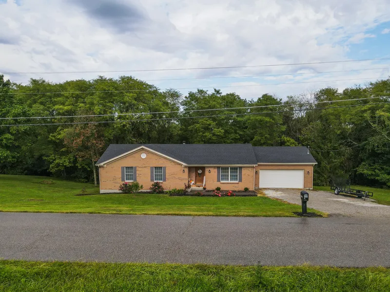HURRY, you will not want to miss this home! A beautiful country home in a peaceful setting on 7+ acres. This ranch home has 3 bedrooms and 2 full bathrooms with first floor laundry. With an open floor plan and cathedral ceilings, there is plenty of space for entertaining. New roof installed in 2021 and new flooring throughout with stainless steel appliances. The back deck overlooks wooded scenery for plenty of relaxation. Full unfinished basement with walkout. Great acreage for hunting and recreation. Lot off to the side of home has separate electric, public water, and septic. Conveniently located close to the Ark Encounter and much more. This is a must see home!