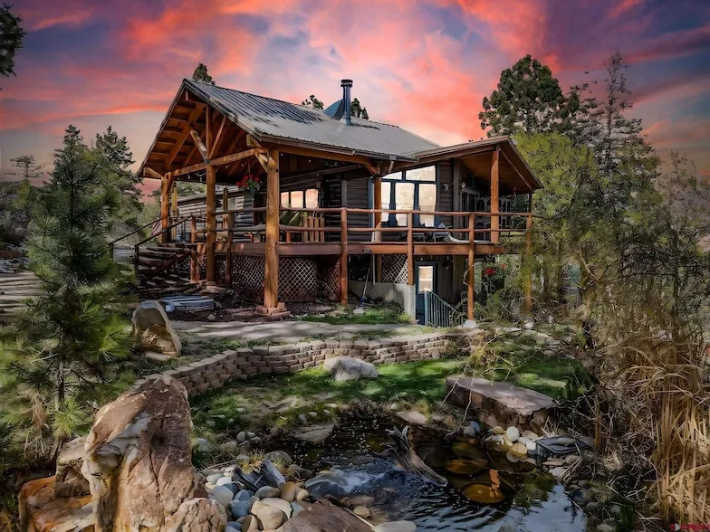 Key Features: 3 Bedrooms | 3 Bathrooms 7.9 Private, Forested Acres with Mountain and Valley Views Wraparound Deck with Tranquil Pond & Water Feature Lower-Level Suite with Separate Entrance (ideal Airbnb or in-law quarters) Two Laundry Rooms perfect for guest stays or multi-generational living Detached 2-Car Garage + Covered Gear/Firewood Storage RV Electrical Hookup on Garage for Convenient Travel Use Propane/Gas Generator for Reliable Year-Round Backup Power Rustic Wood Fireplace Adds the Perfect Colorado Touch Abundant Wildlife & Birdwatching in a Peaceful Natural Setting Successful Short-Term Rental History Hot Tub + Hanging Flower Baskets on Lower Patio Treehouse for Kids & Outdoor Enjoyment Minutes to Downtown Durango, Yet Tucked Away in Nature Full Description: Tucked into the pines just outside Durango, this one-of-a-kind Colorado retreat offers 7.9 acres of peac...