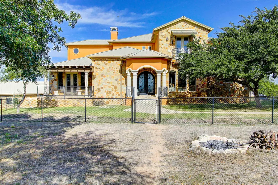 Stunning Spanish-inspired custom home sits high on almost 8 acres of pristine maintained land, ensuring a consistent year-round breeze and offering spectacular panoramic views of Lake Travis and the Texas Hill country. Home is very open with plenty of windows for natural light. Every bedroom, including the guest room have their own bathroom and walk-in closet. Impressive executive office and library. Media room is wired to support HD and surround sound. Downstairs are a game (billiards) room, a second sound proofed media room and a gym/multi-purpose room. The nine-car garage is perfect for car collectors! For swimmers, an indoor two lane junior Olympic lap pool featuring color lighting effects for dazzling night swimming. Large covered patios on all levels. Privacy and security are provided by a six-foot concrete wall which extends along the front and partial laterals. The house is equipped with a 38,000-gallon rainwater collection system. Also, there is a well that is turn-key plumbed into the house as well as supplying the 13 zoned sprinkler system.