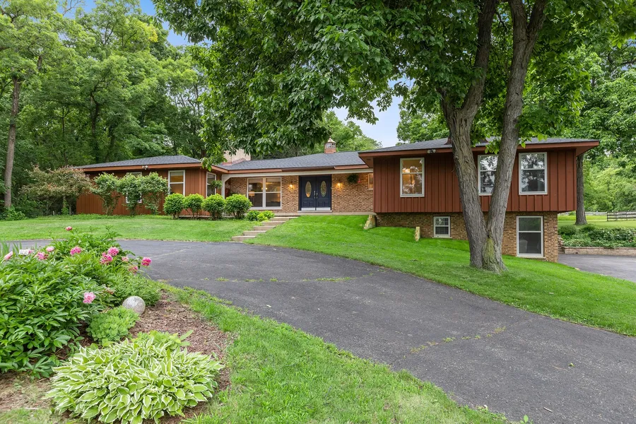 Gorgeous private setting for this 4 bedrooms, 4 full bathroom home on almost 8 acres. Beautiful and well-maintained ranch. You are welcomed by a long-circled driveway with a brick paver porch sitting area. Large open floor plan. Family room has a cozy gas fireplace. Dining room area is lined with large windows to enjoy the nature views. Kitchen has been updated with many cabinets and butler's pantry with eat in area. Master suite has a fireplace and additional sitting room. Bathroom is updated with separate shower and jacuzzi tub. Comfort height dual vanity. Two bedrooms offer private on-suite bathrooms and one is adjoining to hallway bathroom. Large bright, updated laundry room. Home is freshly painted. Basement is framed out and ready to be finished for even more living space. There is a roughed in bathroom in basement as well. Amazing deck that lines the back of the home. Three car garage. Three partially fenced in areas with a 7-stall barn. Property line goes 30 ft passed back fenced area. Surrounded by views of nature all around. Large front yard. Property has direct access to the 50+ miles of the Bull Valley horse trail. Country feel and privacy to enjoy the stars at night yet just minutes to town & Metra! Property can have horses. You will not be disappointed.