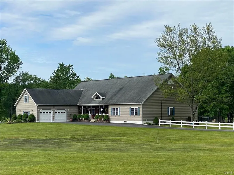 LIVE the GOOD LIFE in this sprawling beautifully maintained RANCH on 7+ lush acres, with GORGEOUS HARDWOOD FLOORS and STUNNING TWO STORY GREAT ROOM with 26 foot brick fireplace. A second FAMILY ROOM off the kitchen faces the pool with enclosed hot tub! Four of the 5 bedrooms feature PRIVATE BATHS. The 5th is used as an office plus enjoy the upstairs loft with closet. The OWNER'S ENSUITE has a luxurious bath with gold leaf accents, whirlpool tub, shower and double sink vanity with a private door leading to the hot tub! Enjoy a large breakfast room off the beautiful cook's kitchen with island, walk-in pantry and nearby formal dining room with tray ceiling. A second entry mud area is just off the kitchen near the garage ideal for wraps & unloading. PERFECT for an extended family, or in-law, this home is ready to fulfill your Bed & Breakfast business dream or be a perfect Airbnb property as it's close to SALMON RIVER & Lake ONTARIO Trophy Fishing! GOLFERS will love how it backs up to beautiful EMERALD CREST GOLF Course! And you'll appreciate the large pole barn for your ATV, extra car & boat. Close to major highways, this property is about 30 minutes to the cities of Syracuse & Oswego.